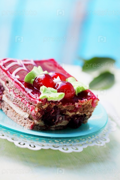 Шоколадный торт с кремом и вишней