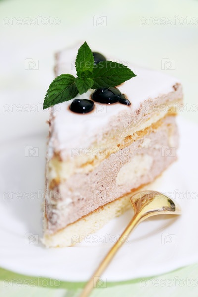 Кусок торта с кремом и шоколадной глазурью