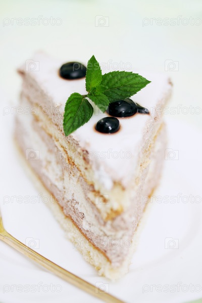 Кусок торта с кремом и шоколадной глазурью