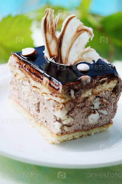 Кусок торта с кремом и шоколадной глазурью
