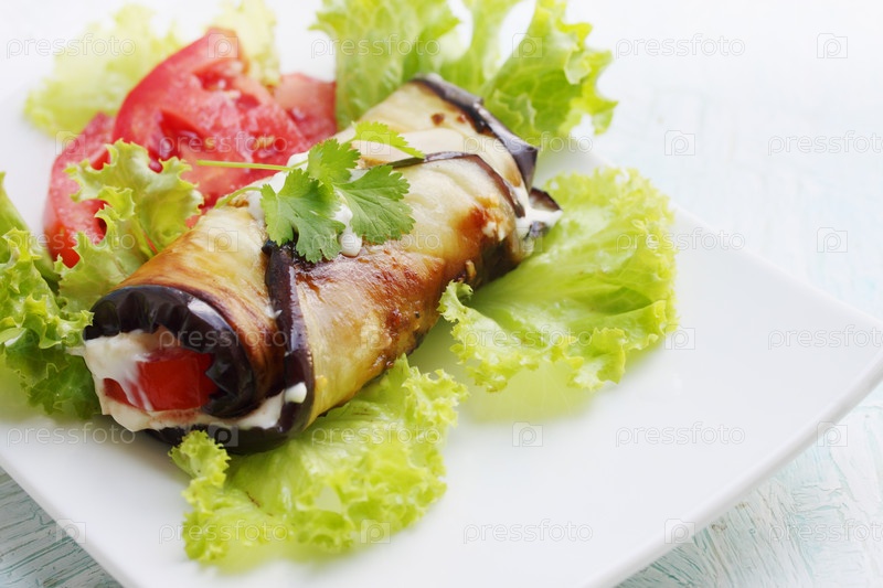 Закуска из баклажанов и помидоров с чесночным соусом