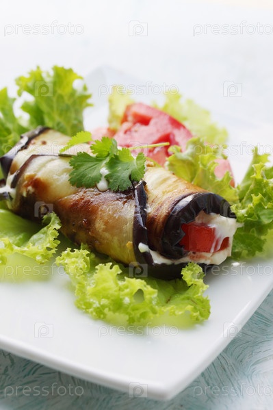 Закуска из баклажанов и помидоров с чесночным соусом