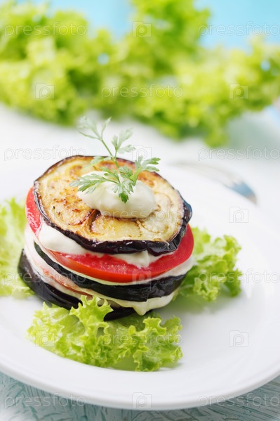 Закуска из баклажанов и помидоров с чесночным соусом