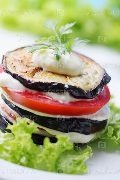 Закуска из баклажанов и помидоров с чесночным соусом