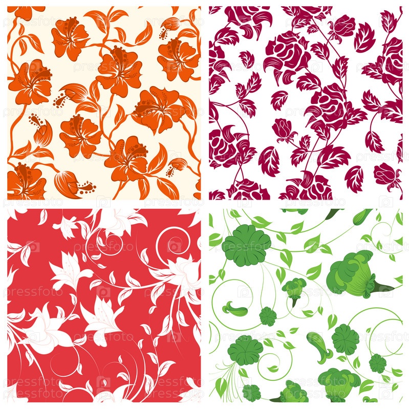 Бесшовный цветочный узор, четыре варианта