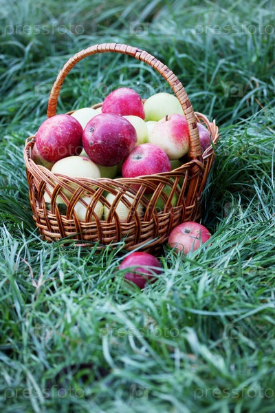 Спелые яблоки в корзине