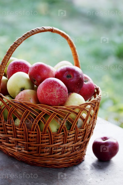 Спелые яблоки в корзине