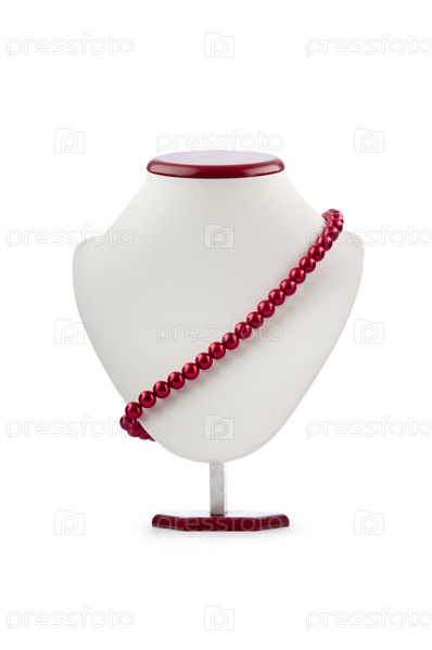 Жемчужное ожерелье на манекене на белом фоне