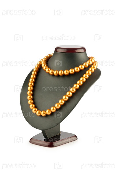 Оранжевое жемчужное ожерелье на манекене на белом фоне