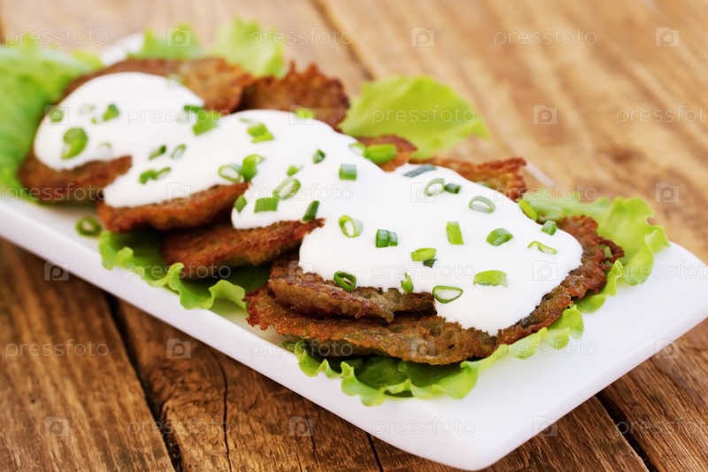 Картофельные оладьи со сметаной и луком