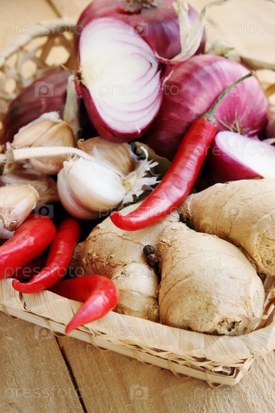 Лук, чеснок, острый перец, имбирь, гвоздика