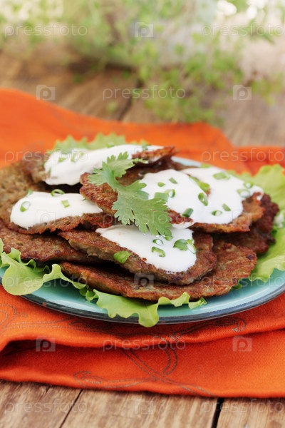 Картофельные оладьи со сметаной и луком
