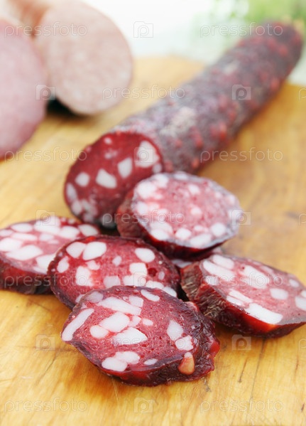Нарезанная колбаса на доске