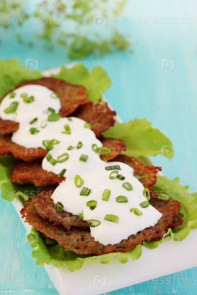 Картофельные оладьи со сметаной и луком