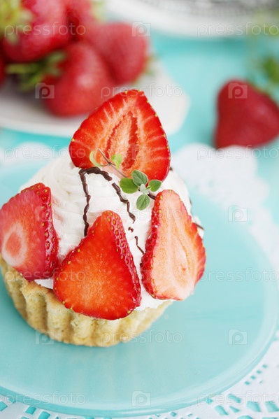 Кекс с кремом и свежей клубникой