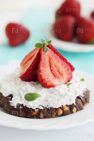 Шоколадный кекс с кремом и свежей клубникой