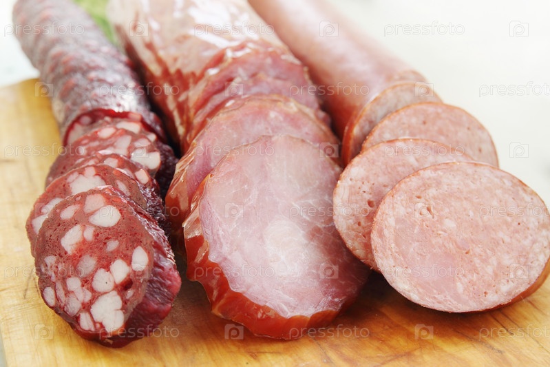 Нарезанная колбаса на доске