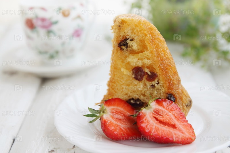 Ромовая баба с изюмом, изолированная на белом фоне
