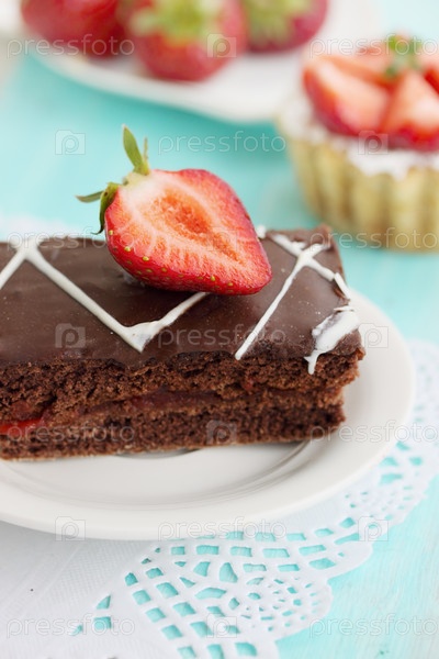 Шоколадный кекс с кремом и свежей клубникой