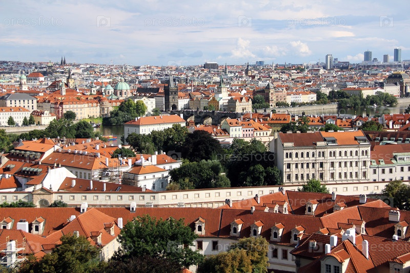 Вид на Прагу и Карлов мост летним днем, Чехия