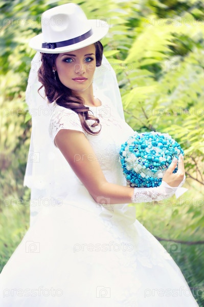 Красивая невеста с букетом из бирюзы