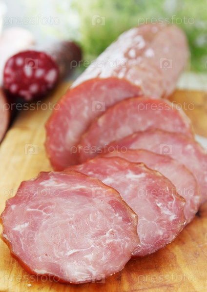 Нарезанная колбаса на доске