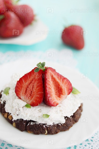 Шоколадный кекс с кремом и свежей клубникой
