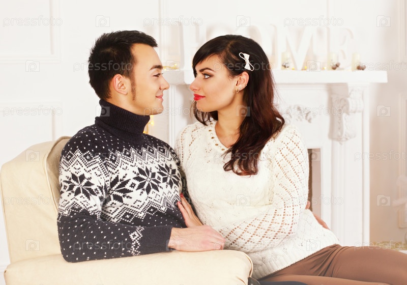 Портрет красивой молодой пары у камина