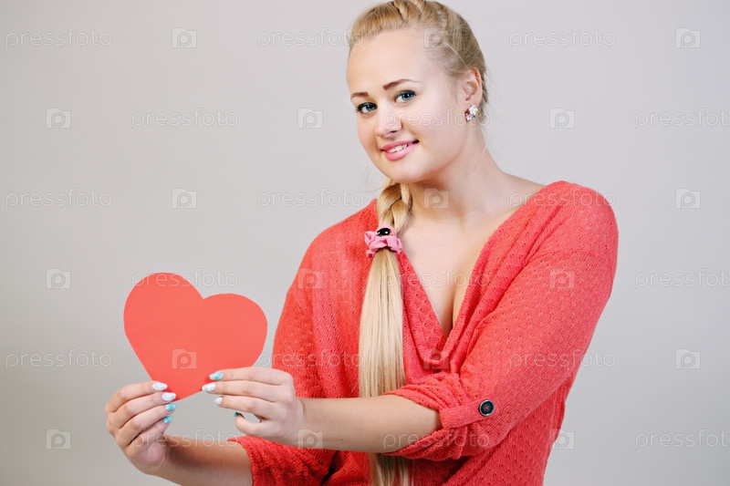 Молодая красивая блондинка держит сердце