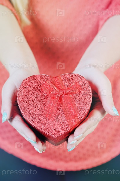 Розовая коробка в форме сердца в руках