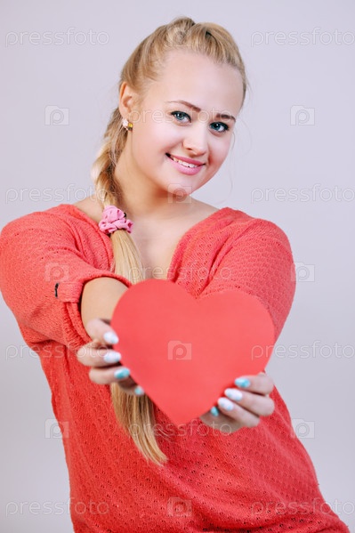 Молодая красивая блондинка держит сердце