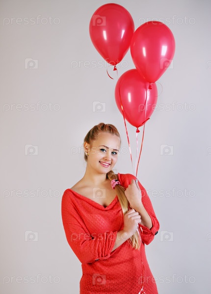 Молодая красивая блондинка держит воздушные шары