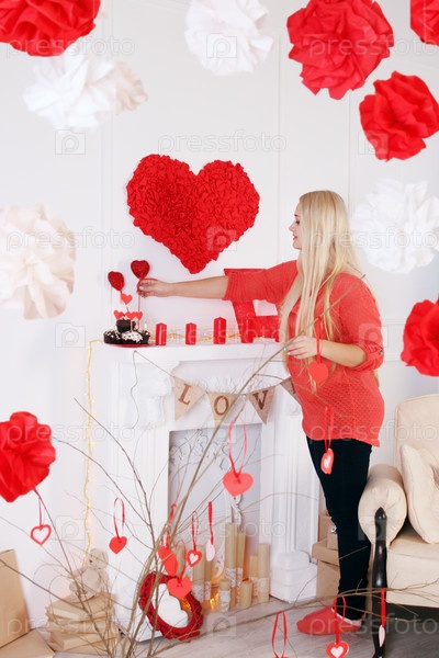Женщина украшает дом на День Святого Валентина