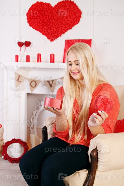 Блондинка с коробкой в форме сердца