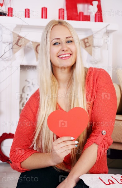 Блондинка читает открытку на День Валентина