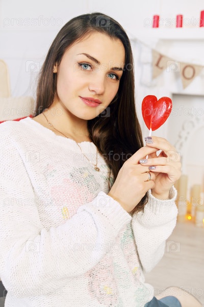 Женщина с леденцом на День Святого Валентина