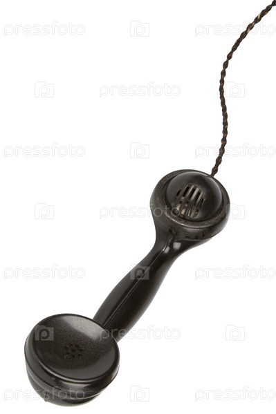 Черная трубка от ретро-телефона с проводом, изолированная на белом фоне