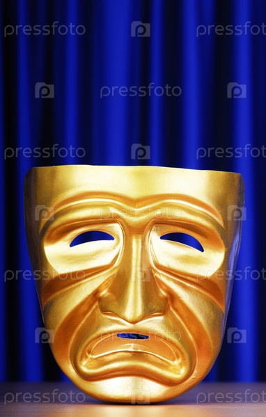 Маска на фоне синего занавеса