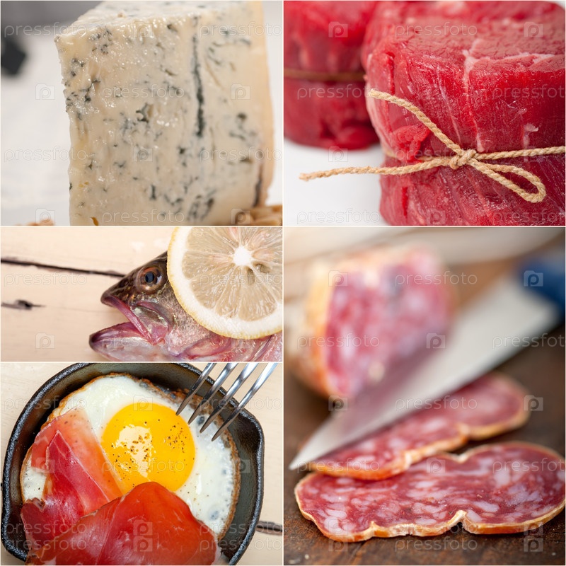 Коллаж из пищи с высоким содержанием белка