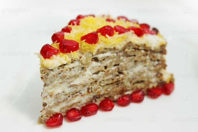 Печеночный торт с яйцом, майонезом и гранатом