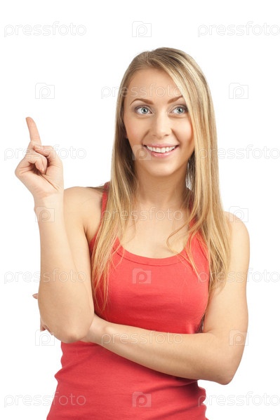 Девушка указывает пальцем вверх