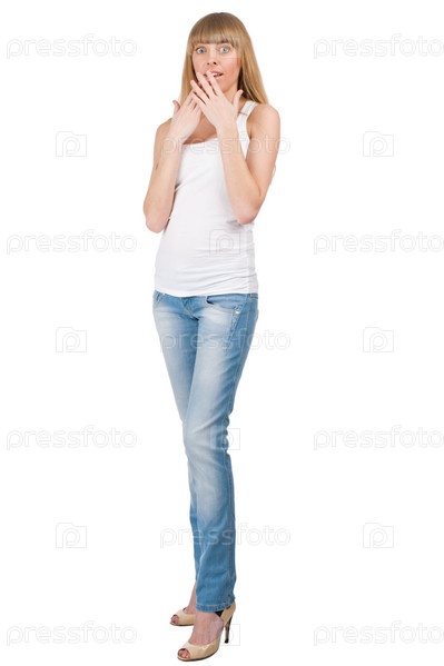 Взволнованная девушка прикрывает рот руками