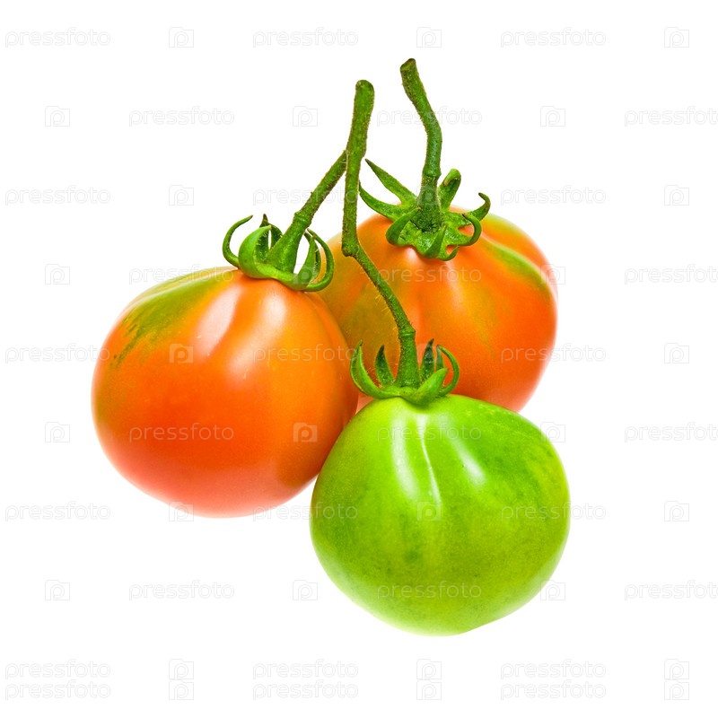 Три разноцветных помидорки, изолированные на белом фоне