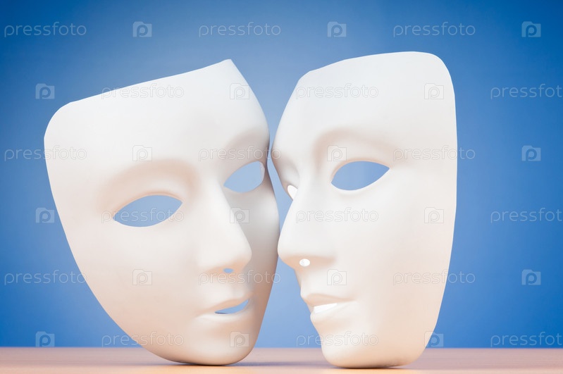 Две белые маски на голубом фоне