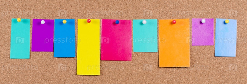 Цветные листы бумаги прикреплены к доске