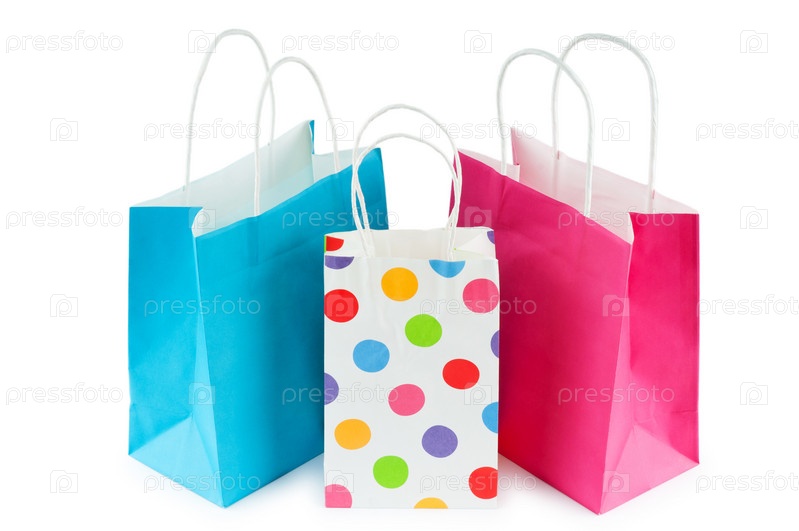 Яркие бумажные пакеты, изолированы на белом