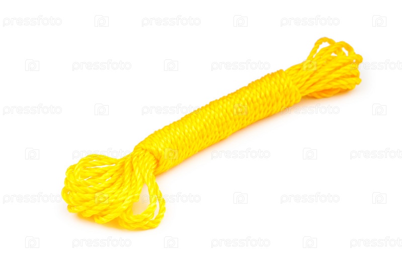 Желтый моток веревки, изолирован на белом фоне