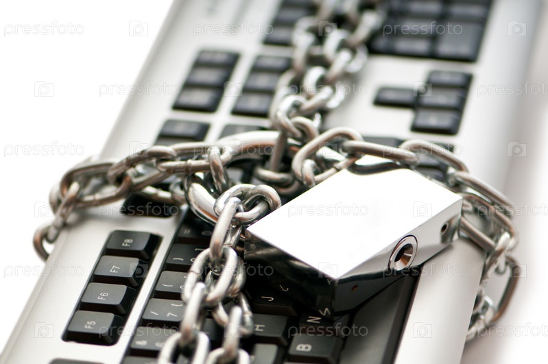Концепция безопасности в интернете: клавиатура, закованная в цепи