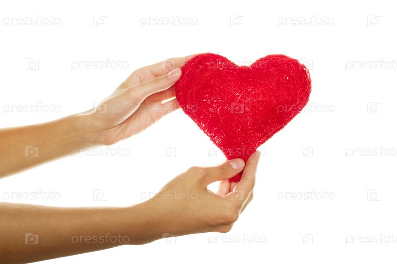 Женские руки держат красное сердце, крупный план. Изолированные на белом фоне