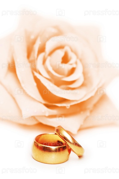 Свадебная открытка с розой и кольцами
